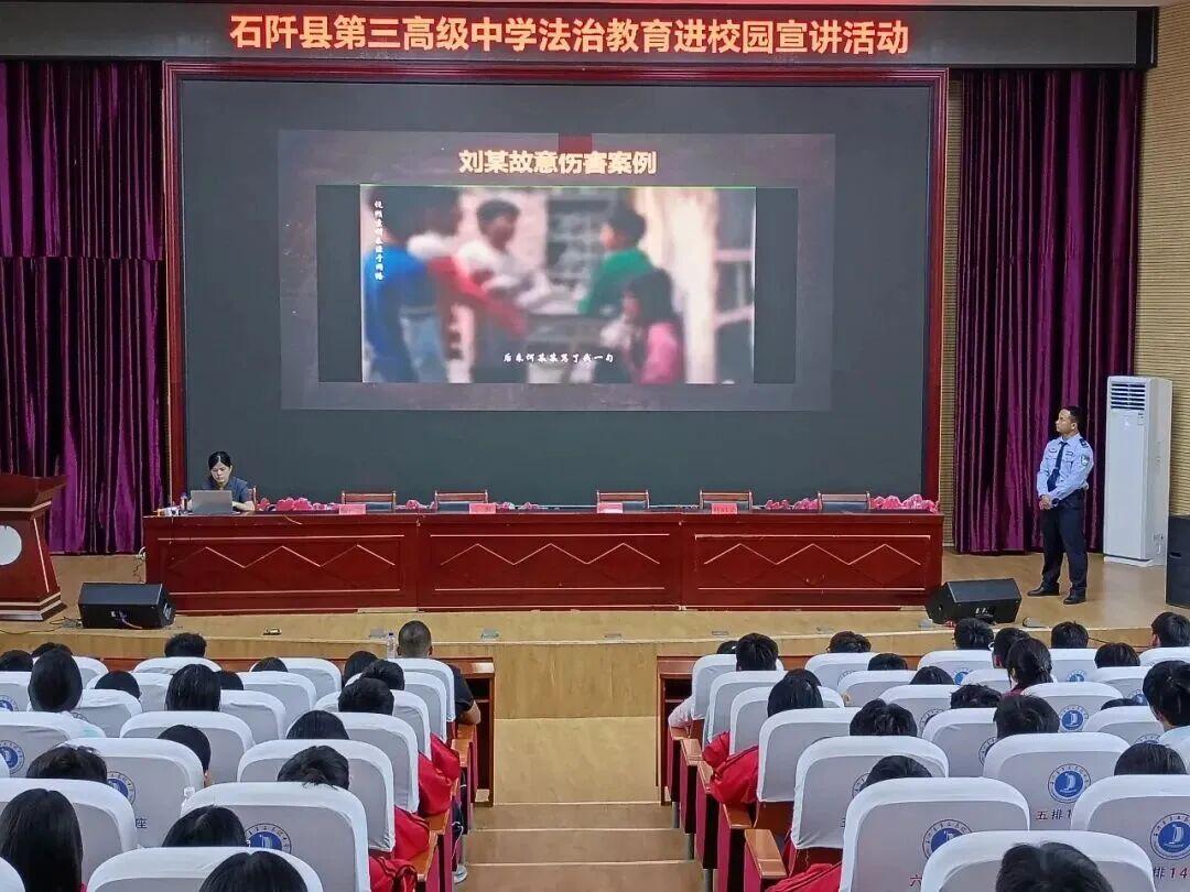 在中學課堂,貴州省未管所受邀聯(lián)合貴州省銅仁市石阡縣法院啟動“未愛護航法伴青春”系列專項活動,民警與法院工作人員組成的宣講團隊先后走進石阡縣5所中學,聚焦青少年犯罪預防與自我保護兩大核心,通過“案例剖析+法律解讀+互動問答”的形式深入淺出講解相關知識,讓師生在沉浸式課堂中樹立法治意識;白云監(jiān)獄民警李燕瓊則在貴陽市第三中學以“年齡不是護身符”為主題,通過“網絡犯罪”“毒品宣教”“互動問答”三個模塊,并借助“警察小熊”調動現(xiàn)場氛圍,將法治教育與學生生活緊密結合,有效提升學生法治觀念與自我保護能力。