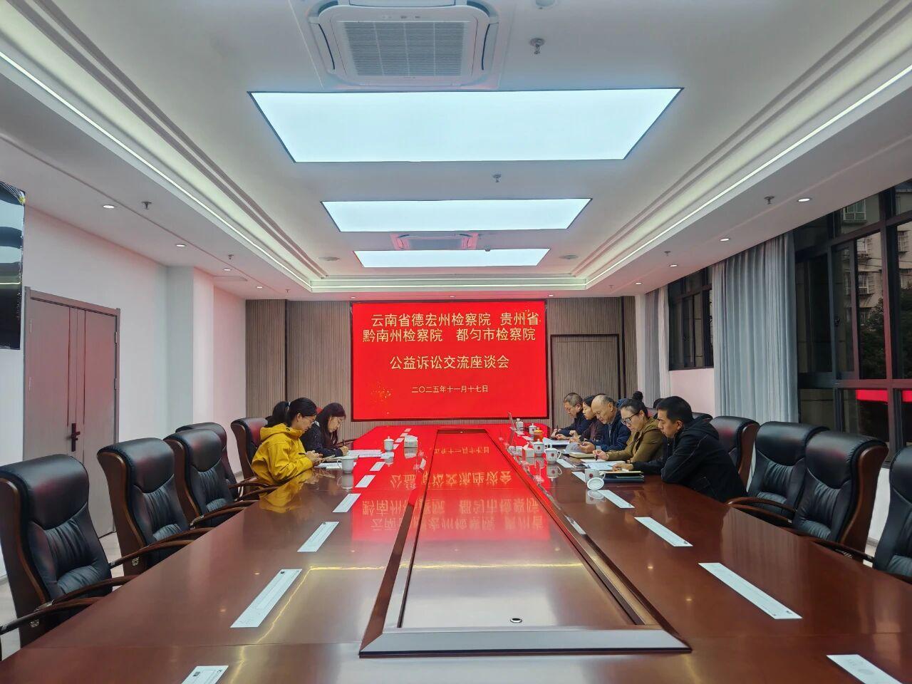 為進(jìn)一步提升公益訴訟檢察工作質(zhì)效,深化跨地域協(xié)作,11月17日,云南省德宏州人民檢察院與貴州省黔南州人民檢察院、都勻市人民檢察院在都勻市召開公益訴訟專題交流座談會(huì),共商辦案經(jīng)驗(yàn),共謀發(fā)展新篇。