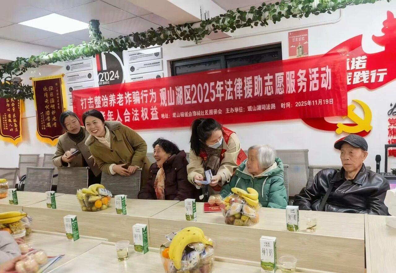 2025年11月19日,貴州省貴陽市觀山湖區(qū)觀山街道金海域居委會組織開展老年人集體生日活動,觀山湖區(qū)司法局觀山司法所順勢而為同步開展預(yù)防養(yǎng)老詐騙主題宣傳活動,通過發(fā)放宣傳資料與互動教學(xué)相結(jié)合的方式,為老年群眾提供防詐知識“生日禮”。
