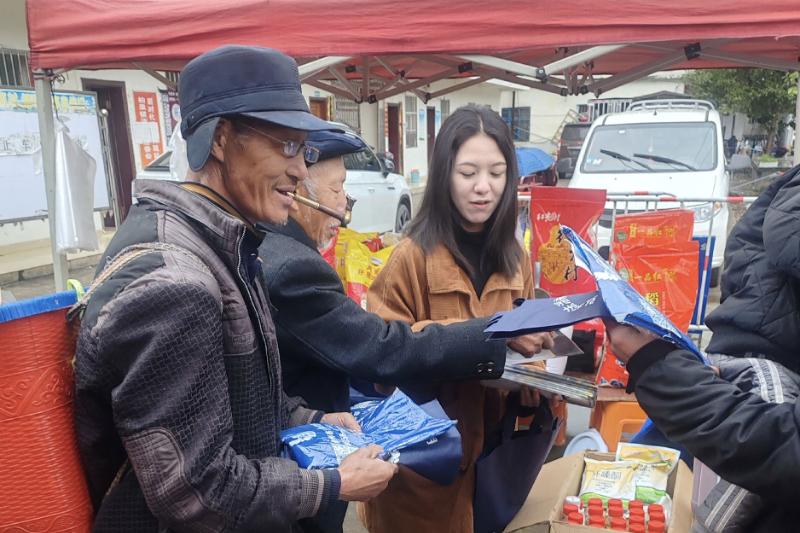 圖為趕集日工作人員向過往群眾發(fā)放宣傳手冊。