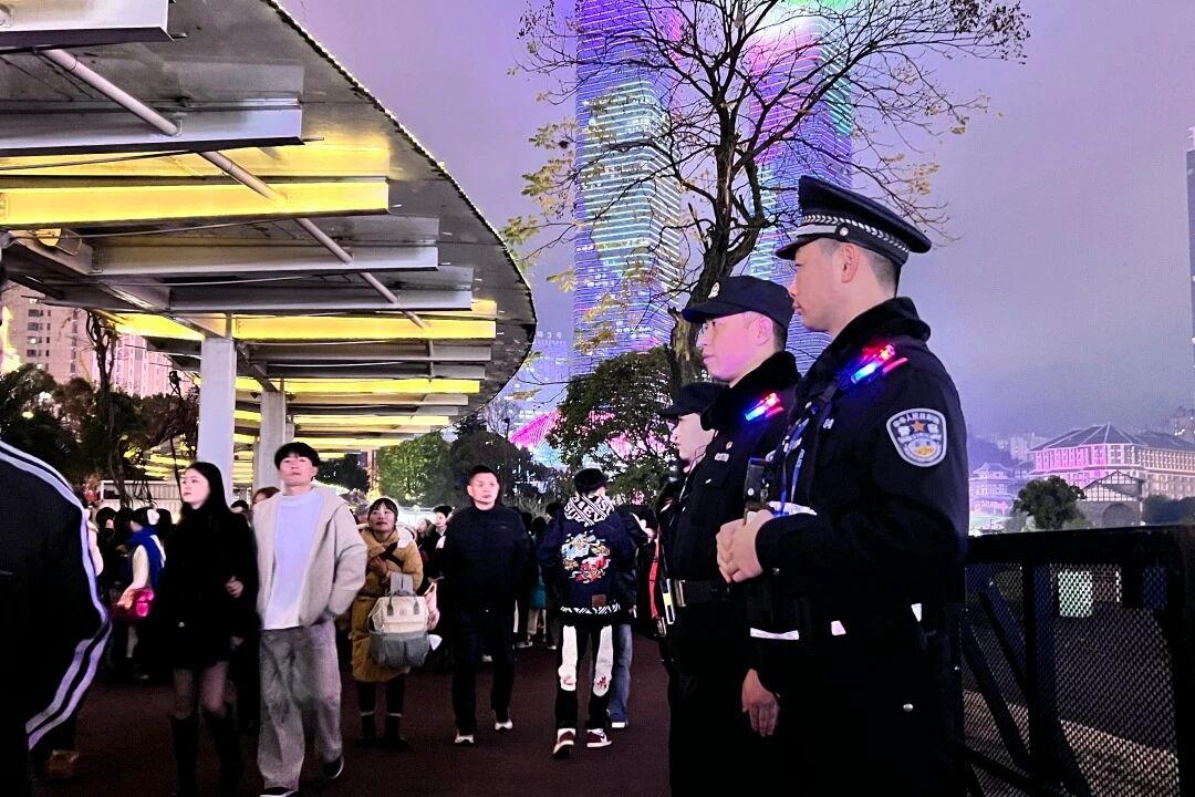 圖為貴陽(yáng)公安民警在跨年夜活動(dòng)現(xiàn)場(chǎng)執(zhí)勤。