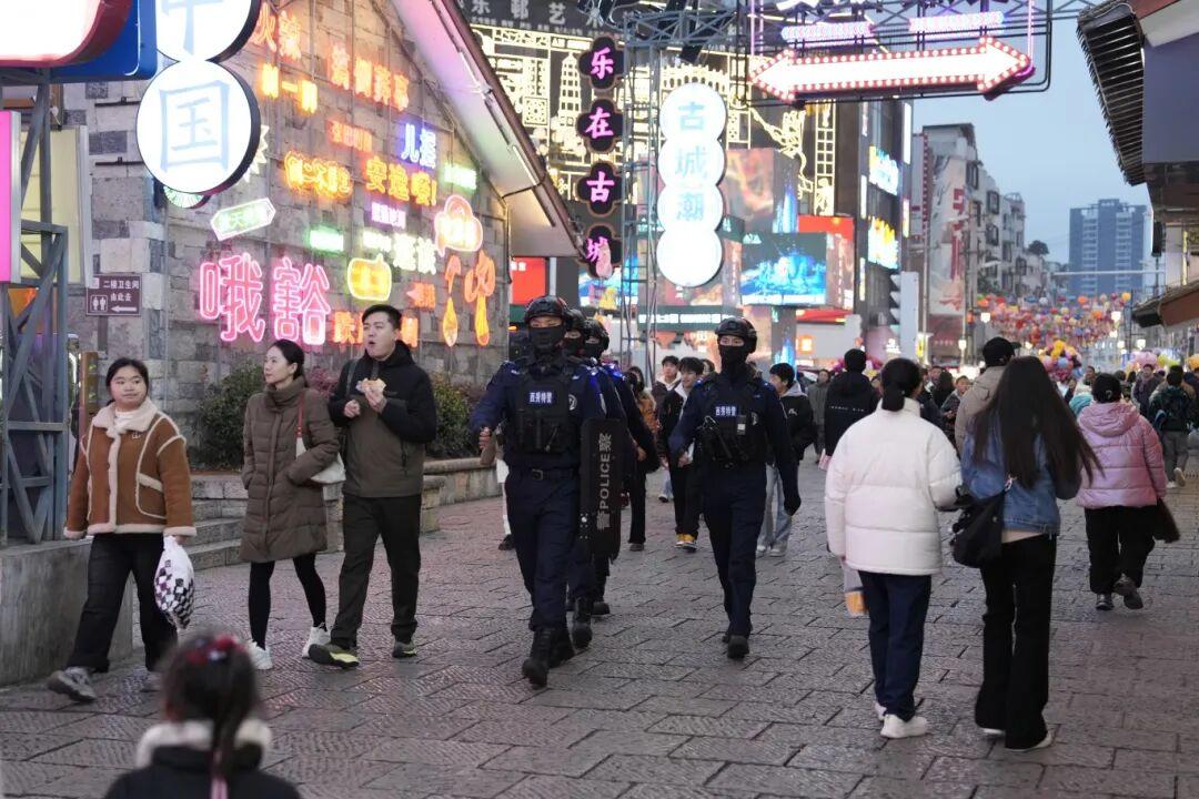 為確保元旦假期全省社會(huì)面安全穩(wěn)定,貴州省公安機(jī)關(guān)嚴(yán)格落實(shí)公安武警聯(lián)勤武裝巡邏和快速反應(yīng)機(jī)制,針對(duì)夜市、商圈等人員密集場(chǎng)所和機(jī)場(chǎng)、車(chē)站等重點(diǎn)部位開(kāi)展社會(huì)治安巡邏防控,累計(jì)投入警力2.3萬(wàn)余人次,做到“見(jiàn)警察、見(jiàn)警燈、見(jiàn)警車(chē)”,有力維護(hù)了良好治安秩序。