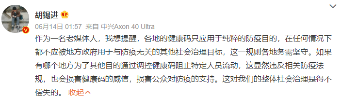 媒體、專家聚焦健康碼的正當(dāng)應(yīng)用目的,認(rèn)為此事突破了法治框架,破壞防疫大局和政府公信力。