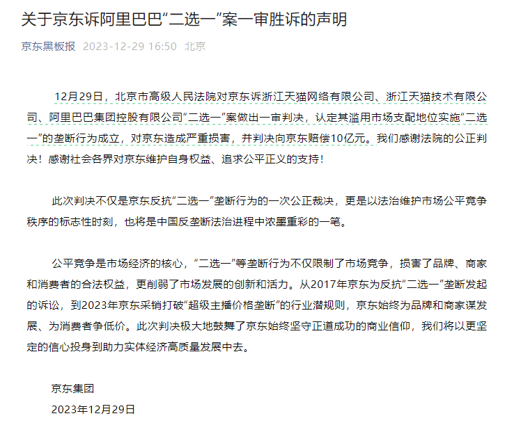 業(yè)內(nèi)認(rèn)為,京東訴阿里巴巴“二選一”案件判決在電商反壟斷領(lǐng)域具有標(biāo)志性意義,給反壟斷法治實(shí)踐帶來深遠(yuǎn)影響。