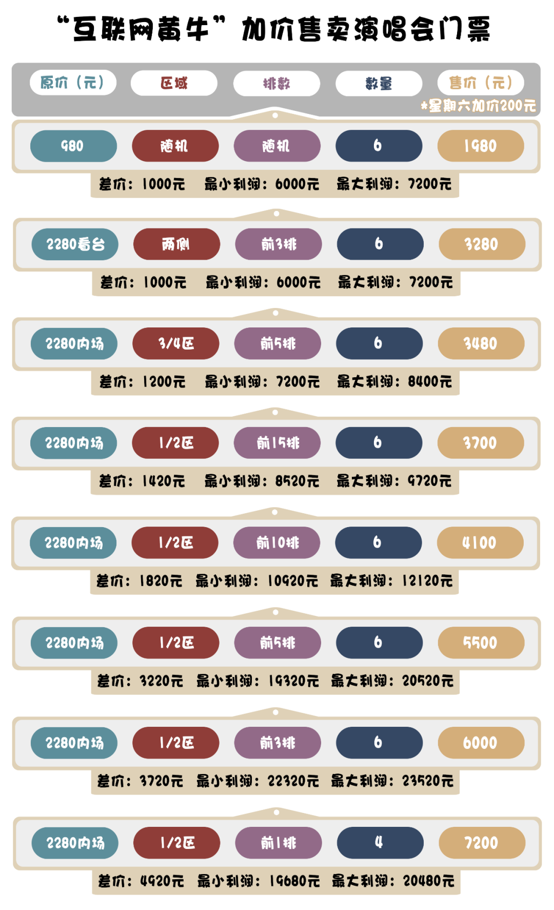 盡管如此,對于背后有二級資源的“互聯(lián)網(wǎng)黃?!眮碚f,售賣“黃?!逼辈⒉皇请y事。以某位在廣東地區(qū)深受歡迎的歌手為例,其預(yù)計在今年11月舉行多場個人演唱會,但有粉絲表示,演唱會的門票仍“一秒售罄”。某二手置物平臺數(shù)據(jù)顯示,演唱會門票并非全部售空,部分門票流入“互聯(lián)網(wǎng)黃牛”之手,原價為2280元的內(nèi)場票,因位置不同被炒至3280元至7200元不等。此外,若趕上演唱會在星期六舉辦,買家還需要額外支付200元的“熱門時段搶票費(fèi)用”。面對“一人一證”的入場機(jī)制,“互聯(lián)網(wǎng)黃?!钡纳馑坪醪⑽词艿接绊憽?/span>
