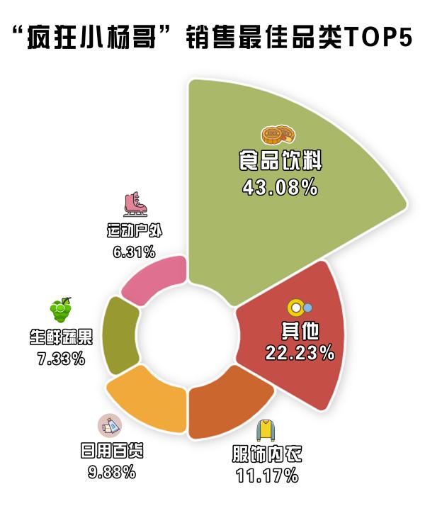 根據(jù)蟬媽媽數(shù)據(jù)顯示,“瘋狂小楊哥”粉絲數(shù)量超1.1億,是妥妥的大流量主播,今年以來(lái),“瘋狂小楊哥”銷售最佳品類中,食品飲料以43.08%的占比位列榜首,但接二連三的食品銷售問(wèn)題卻讓其翻了車。