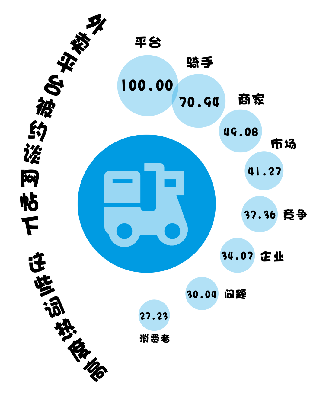 (數據來源:選取知乎話題“市場監(jiān)管總局等五部門約談京東、美團、餓了么等外賣平臺企業(yè),釋放了什么信號?”下的659個回答,做分詞及歸一化處理,進行分詞后將熱度最高的詞語規(guī)定為100)