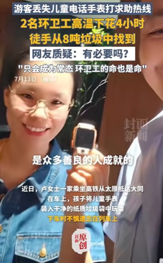 7月13日,“翻垃圾找兒童手表被質(zhì)疑浪費人力”話題沖上微博熱搜第一。引發(fā)爭議后,大同市城管局副局長回應(yīng)稱,此前也有過幫市民尋找失物的先例,此次并非特殊個例,“只要老百姓有需求,我們肯定去做”。該言論再次激發(fā)網(wǎng)民不滿。多數(shù)網(wǎng)民認為“有求必應(yīng)”也要區(qū)分輕重緩急。同時,圍繞游客身份衍生出特權(quán)猜測,有網(wǎng)民爆料其為“深圳市寶安區(qū)人民法院政治部主任盧某”“深圳紀委干部”,對此涉事法院緊急辟謠。主流媒體圍繞公共服務(wù)邊界問題進行探討,如《大河報》刊文指出,當個別需求輕易撬動巨大公共力量時,公共資源或?qū)⒚媾R被無度索取的危機;央廣網(wǎng)認為,相關(guān)管理部門應(yīng)建立更科學(xué)的價值評估體系,在滿足民眾需求與資源優(yōu)化間找到平衡。