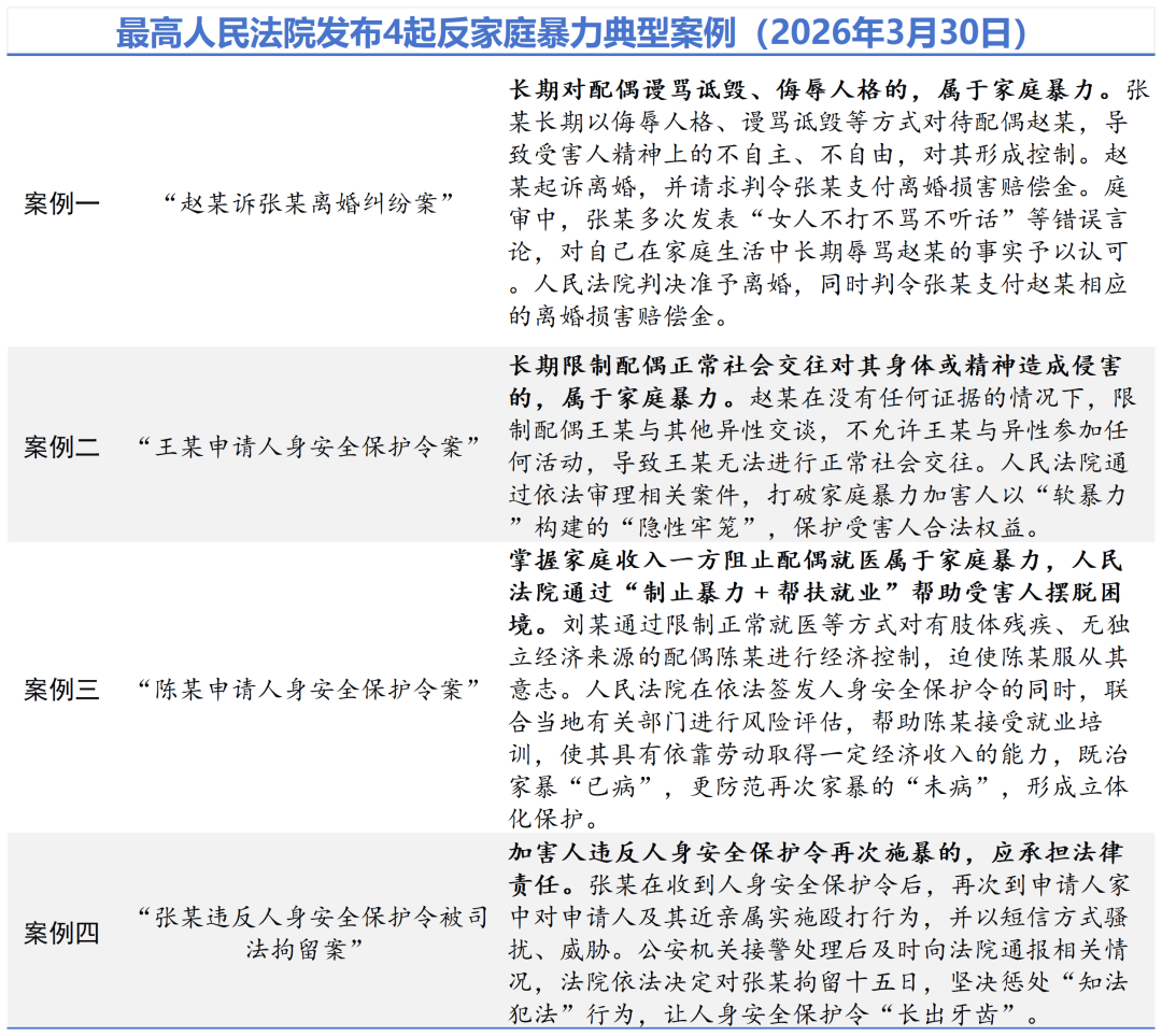 據(jù)中國(guó)新聞網(wǎng)等多家媒體3月30日?qǐng)?bào)道,今年是《中華人民共和國(guó)反家庭暴力法》實(shí)施十周年。3月30日,最高人民法院舉行新聞發(fā)布會(huì),發(fā)布4起反家庭暴力典型案例,并回答記者提問(wèn)。