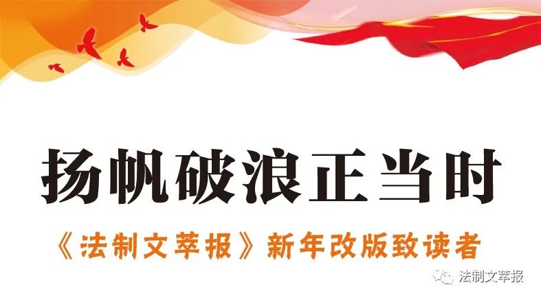 “百年機會真難遇,一線光陰更易流?!薄斗ㄖ莆妮蛨蟆返母陌婧蛣?chuàng)新,是順應(yīng)新時代的召喚,更是凝心聚力的整裝再出發(fā)。《法制文萃報》將抓住機遇、乘勢而上,擔(dān)當(dāng)使命、揚帆破浪,與廣大讀者一道,書寫新篇章、創(chuàng)造新輝煌!