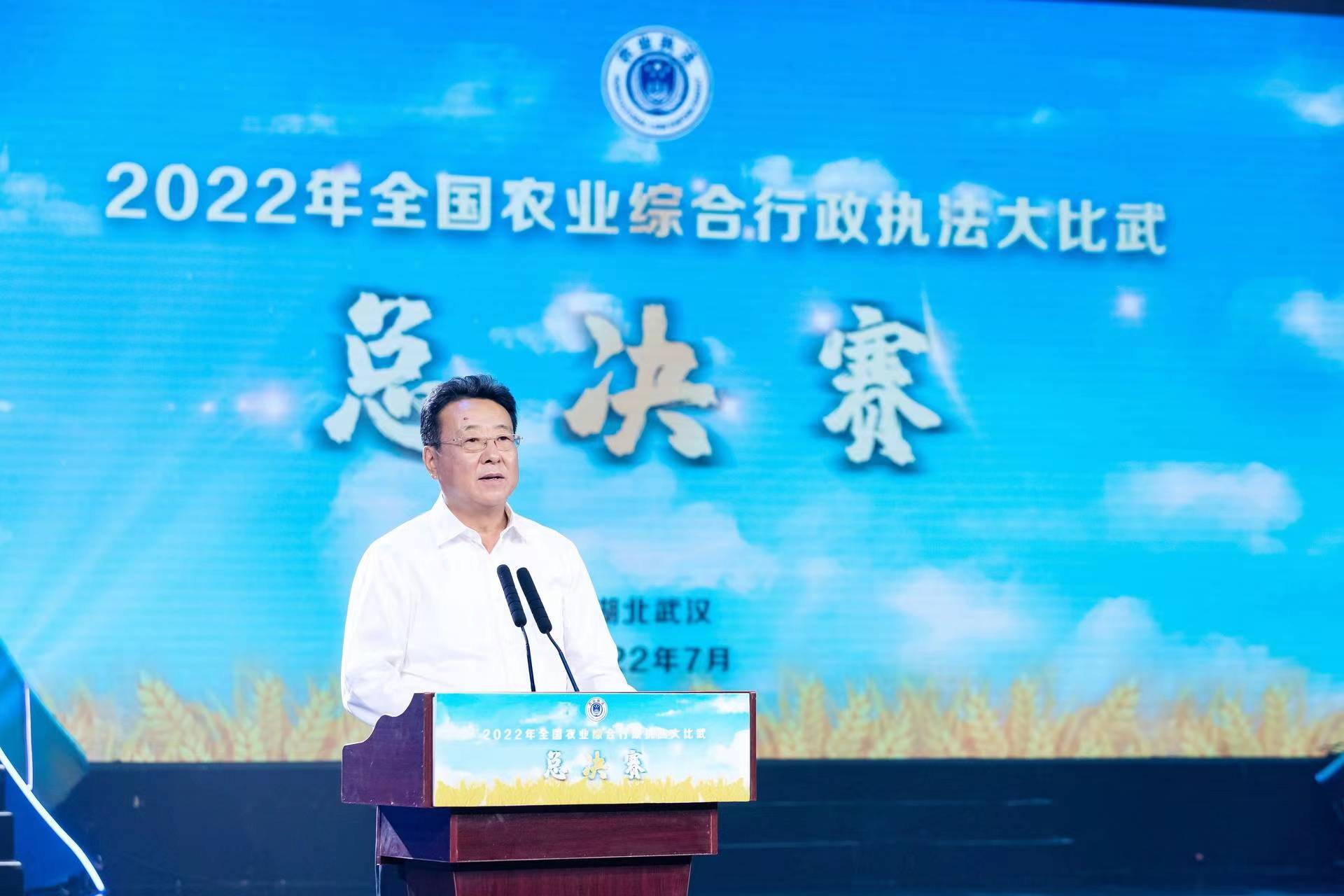 7月6日,由農(nóng)業(yè)農(nóng)村部、湖北省人民政府主辦的2022年全國(guó)農(nóng)業(yè)綜合行政執(zhí)法大比武總決賽在湖北省武漢市舉辦。農(nóng)業(yè)農(nóng)村部國(guó)家首席獸醫(yī)師(官)李金祥出席活動(dòng)并講話。