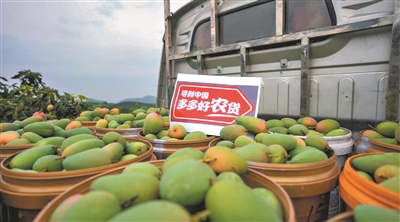在“尋鮮中國(guó) 多多好農(nóng)貨”項(xiàng)目支持下裝車(chē)待售的芒果