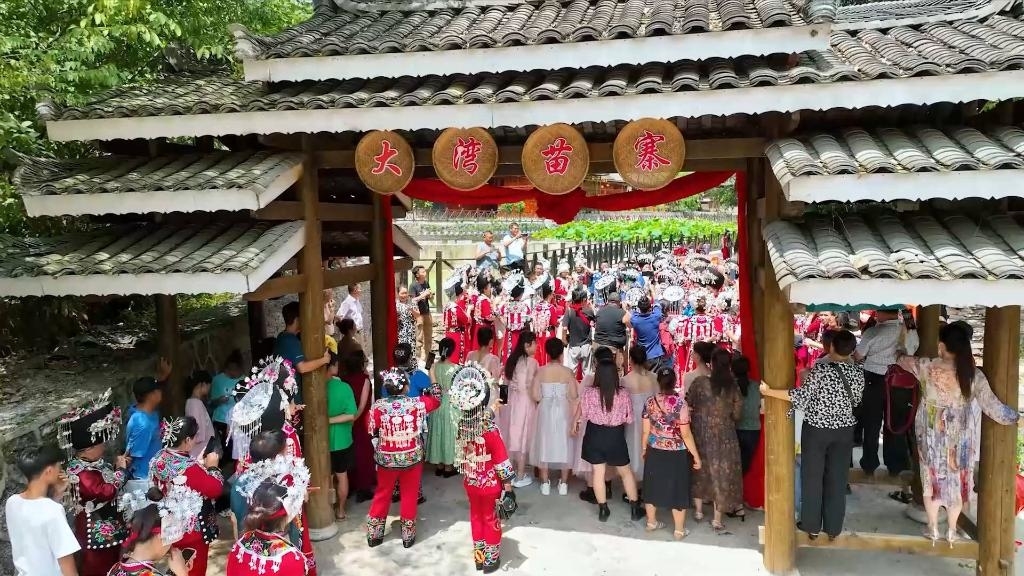 貴州省松桃縣盤信鎮(zhèn)的大灣苗寨,由于村寨宅院保存完好,民族風(fēng)情濃厚,成了當?shù)匚慰偷牧咙c,每逢有喜慶節(jié)日,更會吸引大量的游客來到苗寨采風(fēng)。