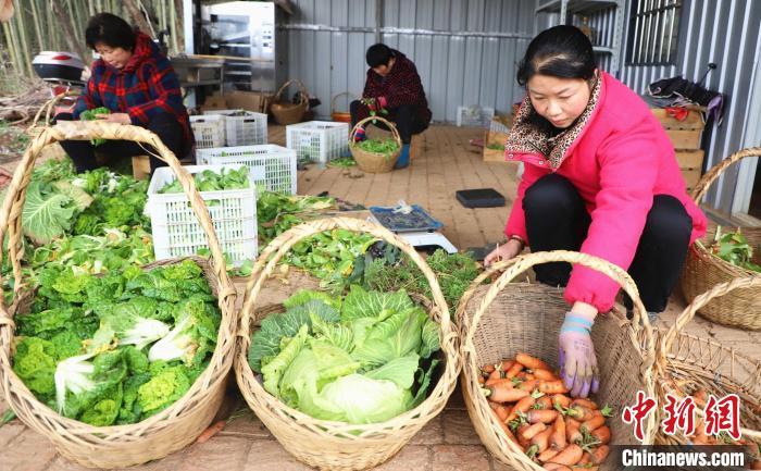 2月14日,安徽省肥西縣紫蓬山旅游開發(fā)區(qū)張老圩村風(fēng)之谷家庭農(nóng)場(chǎng)內(nèi),農(nóng)民在給菜地澆水,采摘、分揀新鮮蔬菜供應(yīng)市場(chǎng),田間地頭一派繁忙景象。
