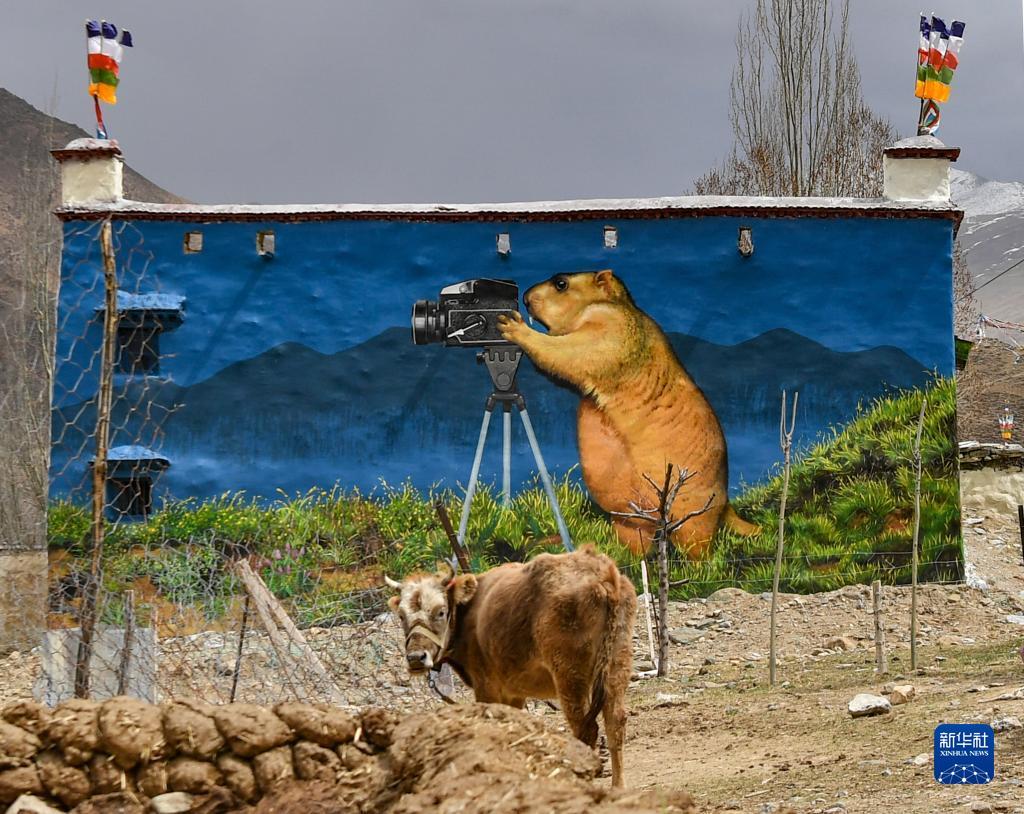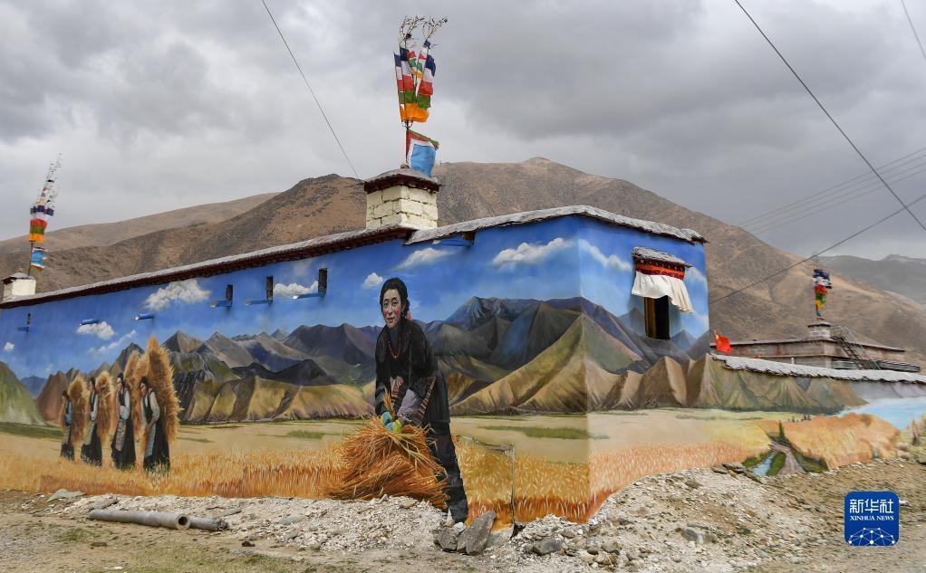 這是4月10日在拉薩市達孜區(qū)章多鄉(xiāng)恰村拍攝的墻畫。記者 晉美多吉 攝