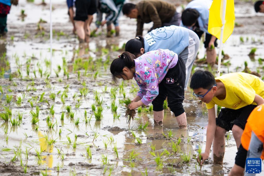 當(dāng)日,在湖南省長沙市寧鄉(xiāng)市灰湯鎮(zhèn)花果山村舉行的農(nóng)耕民俗文化節(jié)學(xué)生研學(xué)活動(dòng)中,孩子們通過開展稻田插秧、捉泥鰍等“農(nóng)趣” 比賽,走進(jìn)田間地頭,感受勞動(dòng)帶來的艱辛與快樂。
