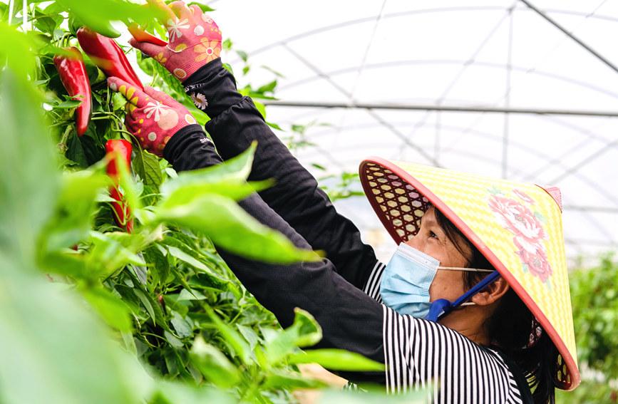 工人采摘辣椒。黃天仕 攝