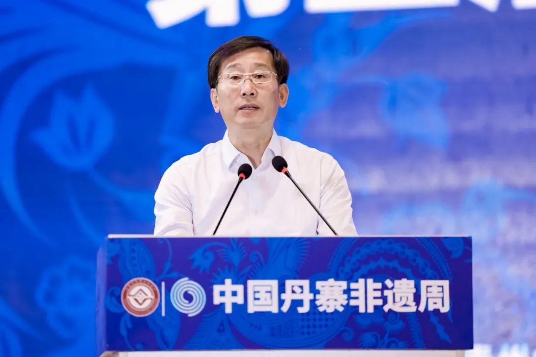 7月21日晚,第三屆中國丹寨非遺周在貴州省黔東南州丹寨縣丹寨萬達小鎮(zhèn)開幕。全國人大教科文衛(wèi)委員會主任委員、文化和旅游部原黨組書記、部長雒樹剛出席。文化和旅游部副部長饒權(quán)講話。中國非物質(zhì)文化遺產(chǎn)保護協(xié)會會長王曉峰,貴州省人大常委會副主任、省總工會主席桑維亮,萬達集團總裁齊界致辭。貴州省人大常委會黨組成員于杰,貴州省委宣傳部副部長、省文化和旅游廳廳長孫含欣,州委書記、州長安九熊,州人大常委會主任湯越強,州政協(xié)主席潘玉鳳,州領(lǐng)導(dǎo)譚海、崔鵬、龍黔清、王建華,亞洲財富論壇執(zhí)行主席、秘書長韓劍鋒出席開幕式。中國非物質(zhì)文化遺產(chǎn)保護協(xié)會副會長兼秘書長張雅芳主持開幕式。