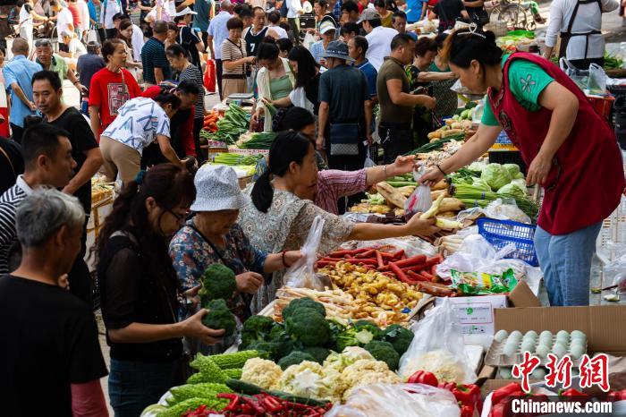 恒合土家族鄉(xiāng)的農貿市場,村民帶著自家種的蔬菜供避暑民眾選購 冉孟軍 攝