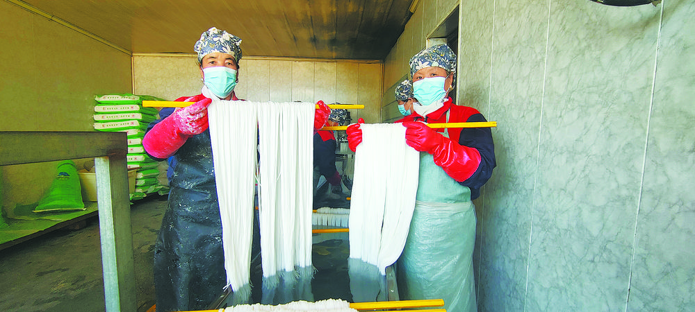 “我家里五口人,只有18畝(即1.2公頃)旱地,僅夠溫飽。一開(kāi)始我們夫妻倆就在縣城收廢品,想著攢點(diǎn)小本錢做生意。2009年開(kāi)始收洋芋,并一個(gè)村一個(gè)村地貼廣告??墒呛髞?lái)發(fā)現(xiàn),收回來(lái)的洋芋短時(shí)間內(nèi)根本賣不出去,那怎么辦呢?我們就想辦法,把洋芋加工成了淀粉和粉條,方便儲(chǔ)存。再后來(lái),面對(duì)沒(méi)有銷路的情況,我和丈夫就推著架子車沿街叫賣。那個(gè)時(shí)候非常辛苦,晚上要加工粉條,白天要沿街叫賣,每天24小時(shí)幾乎沒(méi)有休息的時(shí)間?!闭f(shuō)起過(guò)去的坎坷經(jīng)歷,任成香的眼里不禁泛起了淚光。