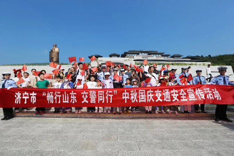 9月30日,山東省濟寧市交警在曲阜尼山圣境景區(qū)開展“暢行山東 交警同行”中秋國慶交通安全主題宣傳活動。