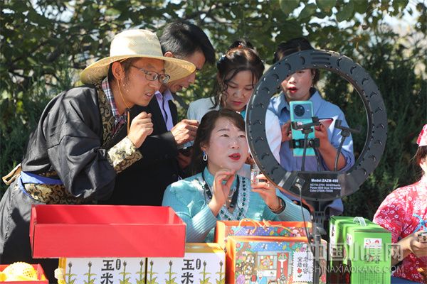 宜君縣哭泉梯田舉辦玉米蘋果豐收季網(wǎng)紅直播帶貨活動(dòng)(宜君縣經(jīng)貿(mào)局供圖)