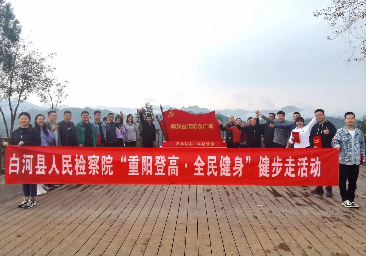 金秋十月爽,九九話重陽。為大力弘揚孝親敬老的傳統(tǒng)美德,10月23日,陜西省安康市白河縣人民檢察院組織退休老干部和全體干警職工到解放白河戰(zhàn)斗革命遺址紗帽山,開展“重陽登高·全民健身”健步走活動。