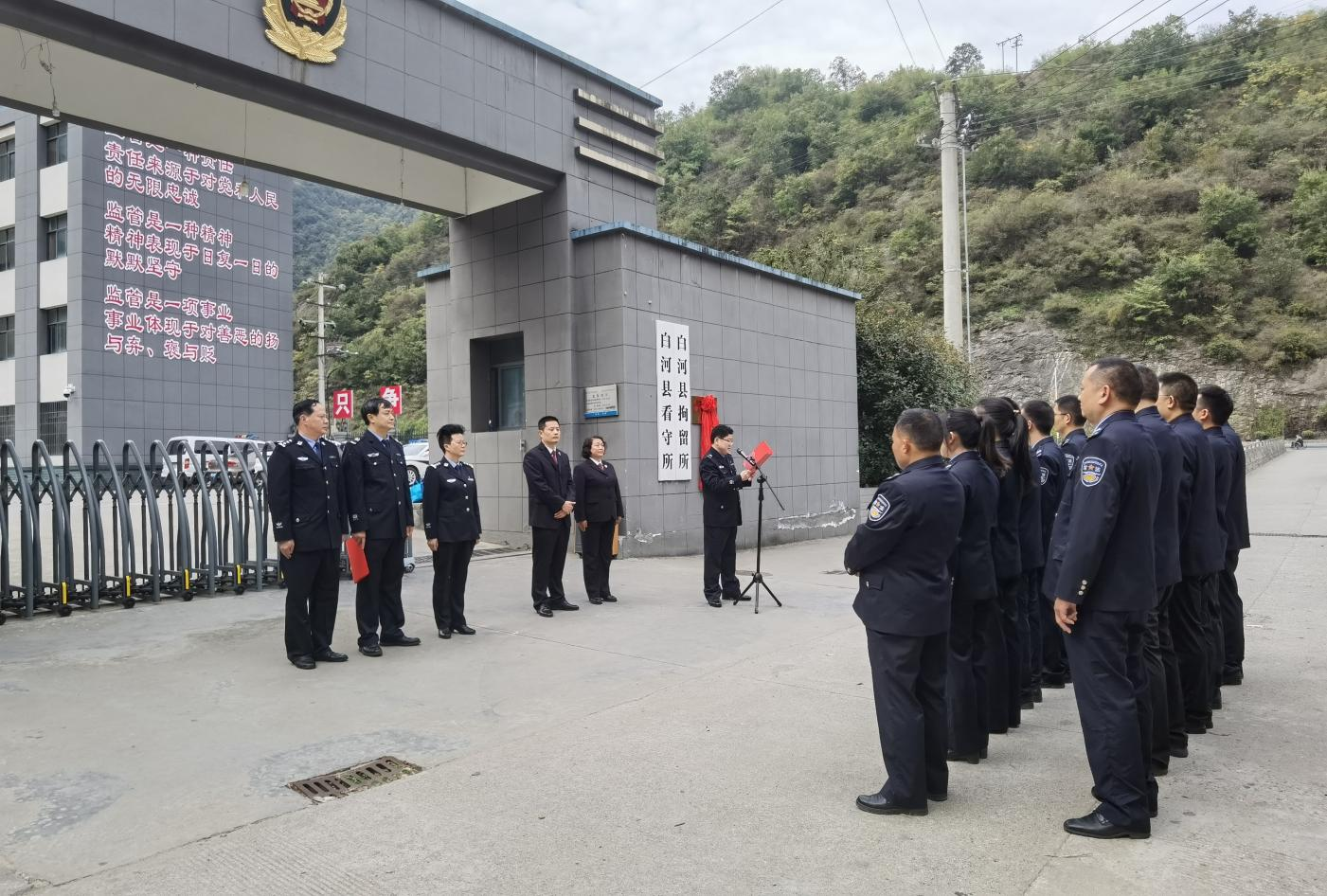 為進(jìn)一步豐富社區(qū)矯正教育矯治形式,提升社區(qū)矯正工作質(zhì)效,維護(hù)社會穩(wěn)定,10月25日,陜西省安康市白河縣人民檢察院助推建立的該縣第一個(gè)社區(qū)矯正警示教育基地在縣看守所揭牌成立,該縣公安局副局長程文曉、縣檢察院副檢察長祝軍、縣司法局局長丁衍明等參加揭牌儀式。
