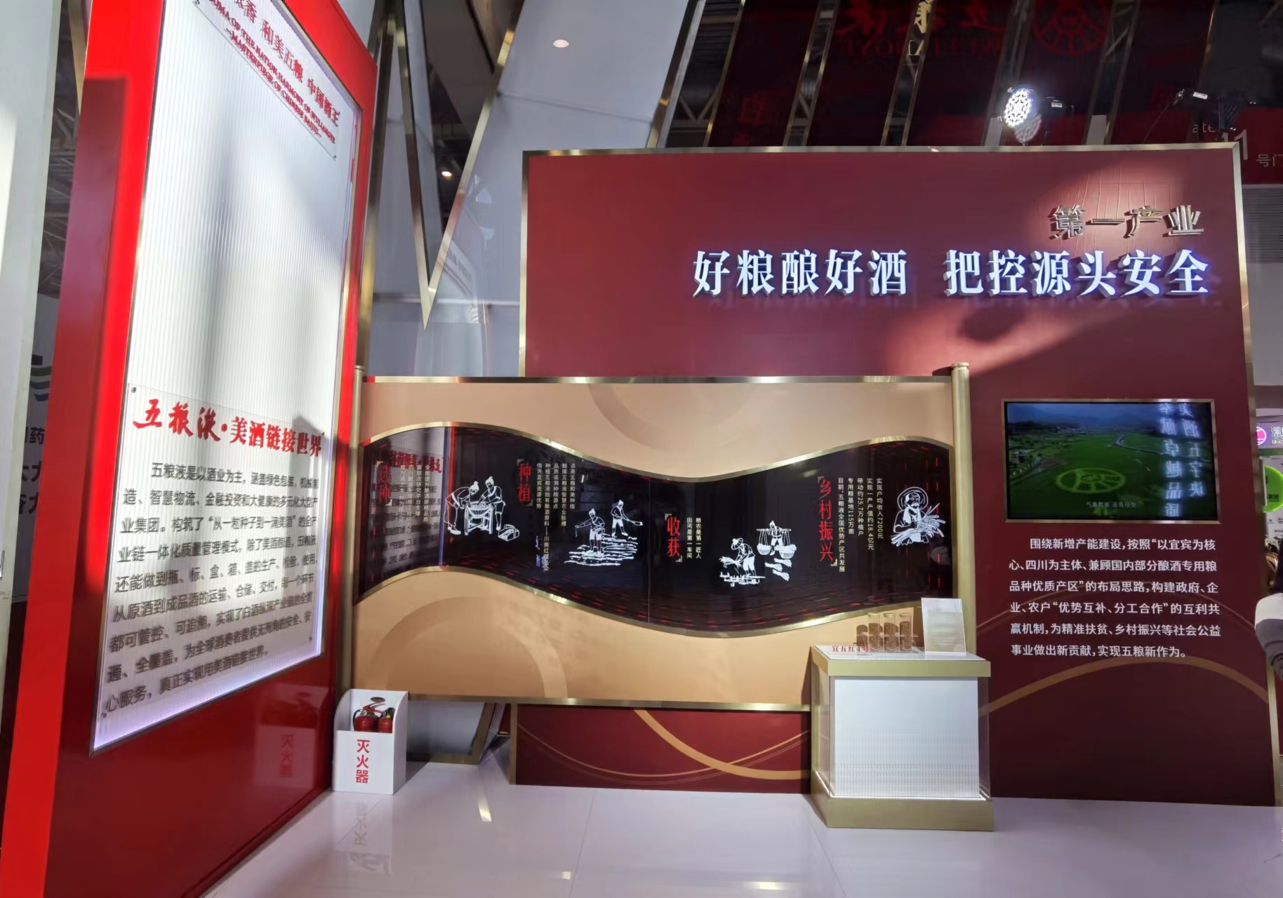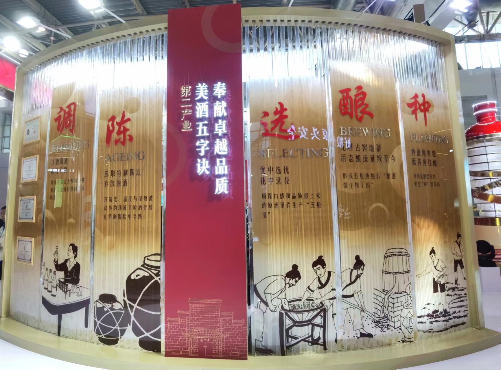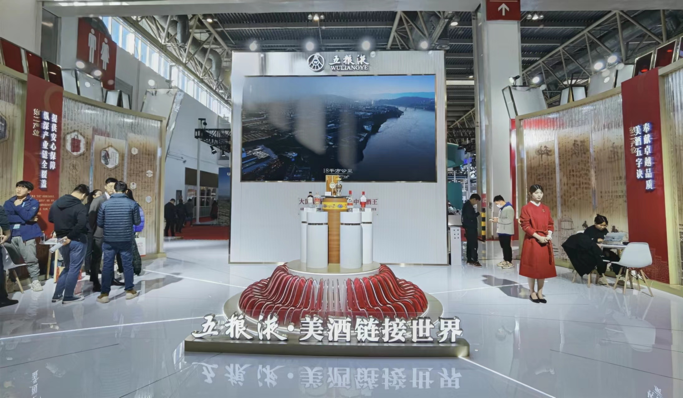 在展廳中心,501五糧液、經(jīng)典五糧液、第八代五糧液、五糧液·紫氣東來等核心產(chǎn)品亮相,精彩呈現(xiàn)五糧液以五糧美酒聯(lián)結(jié)內(nèi)部全產(chǎn)業(yè)鏈,鏈接外部和美世界的和美支撐,打造世界一流企業(yè),共釀美好生活的責(zé)任擔(dān)當(dāng)。五糧液將“和美”理念貫穿整個產(chǎn)業(yè)鏈過程中,以和美種植、和美釀造、和美勾調(diào)、和美營銷、和美文化為生產(chǎn)動力,以“包裝、物流”為強大支撐,每一個環(huán)節(jié)都可管控、可追溯,致力于為全球消費者提供安全、安心服務(wù),真正實現(xiàn)用美酒鏈接“和美世界”。