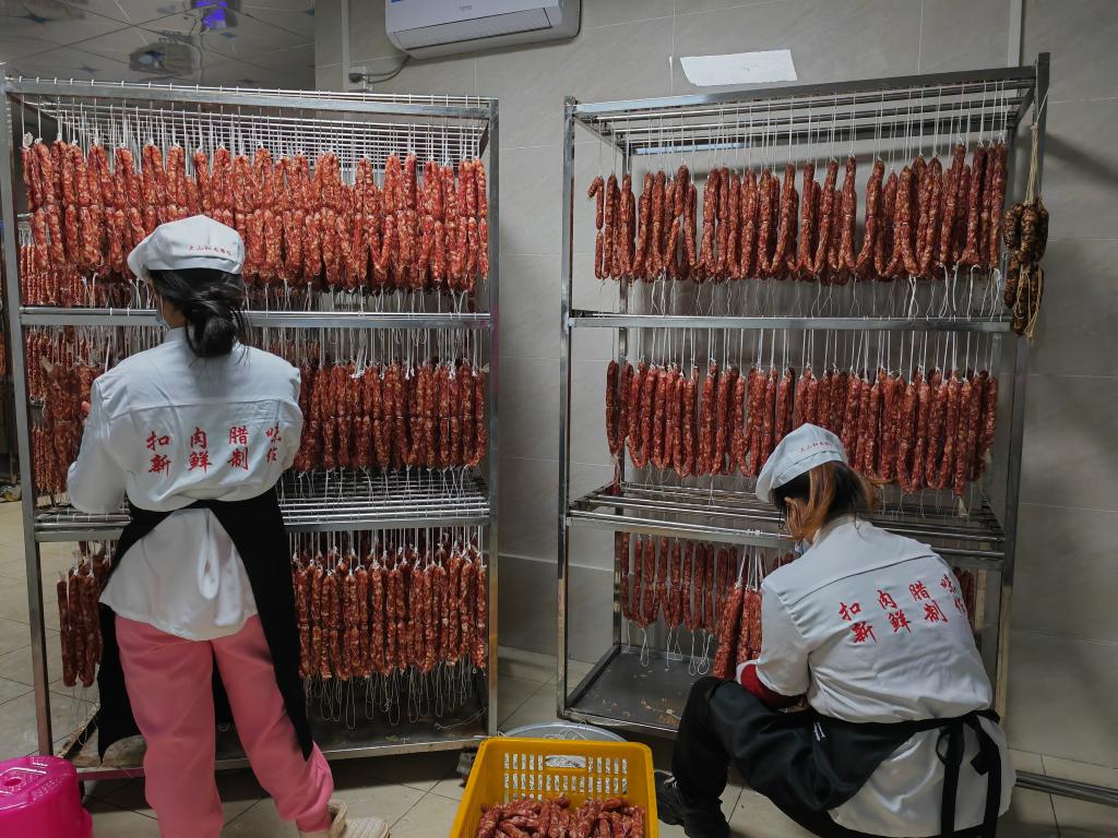 做好土特產(chǎn)文章,發(fā)展特色產(chǎn)業(yè)是實現(xiàn)鄉(xiāng)村振興的一條重要途徑。在陸川縣,當(dāng)?shù)貒@國家地理標(biāo)志產(chǎn)品陸川豬不斷助推村民致富增收。切割、生產(chǎn)、烘干、包裝……在位于陸川縣珊羅鎮(zhèn)大山村的玉林市浚淇食品有限公司,工人們正忙著生產(chǎn)和包裝臘腸。“年關(guān)將至,臘肉、臘腸、扣肉的生產(chǎn)也迎來旺季?!惫矩?fù)責(zé)人梁滬芳說。