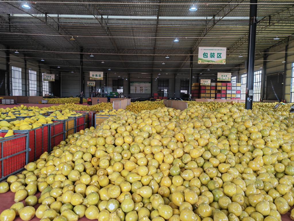 記者在廣西容縣萬畝沙田柚種植有限公司的種植基地看到,上千畝沙田柚果樹生長正旺。在倉儲物流車間,摘下來的沙田柚經(jīng)過自動化清洗、篩選,最后由工作人員裝箱打包,郵寄到全國各地。“我們今年沙田柚產(chǎn)量有400多萬斤,價格不錯,我們通過線上、線下的模式進行銷售,如今賣了300多萬斤?!惫矩?fù)責(zé)人彭遠說,基地每天需要400人做工,優(yōu)先雇傭本地村民,持續(xù)發(fā)揮聯(lián)農(nóng)帶農(nóng)作用。