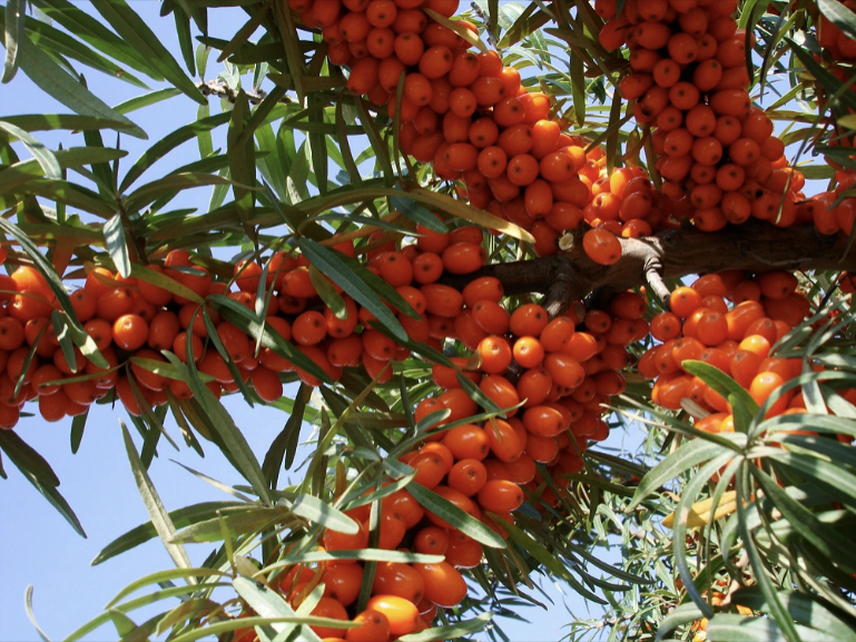 在最貧瘠的土地上生長出茂盛的枝葉和營養(yǎng)豐富的果實(shí),是沙棘這種植物的真實(shí)寫照?!皩L簟丙}堿、荒漠等條件惡劣的土地扎根,形成“地上一把傘,地面一層氈,地下一張網(wǎng)”,防止水土流失,保護(hù)生態(tài)環(huán)境;同時沙棘“渾身是寶”,澤福一方百姓,帶動一地經(jīng)濟(jì);更憑借藥食同源的特性,營養(yǎng)大眾,為消費(fèi)者帶來有益身體健康的沙棘產(chǎn)品。