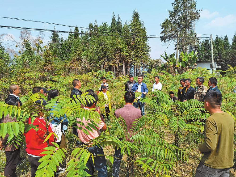 德宏傣族景頗族自治州芒市森林覆蓋率達(dá)68.87%,擁有森林蔬菜210多種,其中日常食用的10余種。2021年6月,云南省林業(yè)和草原科學(xué)院在芒市鎮(zhèn)河心場村實(shí)施了“云南特色木本森林蔬菜高效培育技術(shù)推廣示范”項(xiàng)目,推廣種植香椿、大參、梁王茶等木本森林蔬菜100畝。通過優(yōu)質(zhì)種苗的提供、培育技術(shù)的跟蹤指導(dǎo)、銷售企業(yè)的引入,項(xiàng)目成效初步顯現(xiàn)。當(dāng)?shù)胤N植的香椿、大參已投產(chǎn),每畝收益4000元以上,實(shí)現(xiàn)了一次投入多年產(chǎn)出,有效拓展了群眾增收渠道,為村集體經(jīng)濟(jì)發(fā)展提供了林草科技支持。