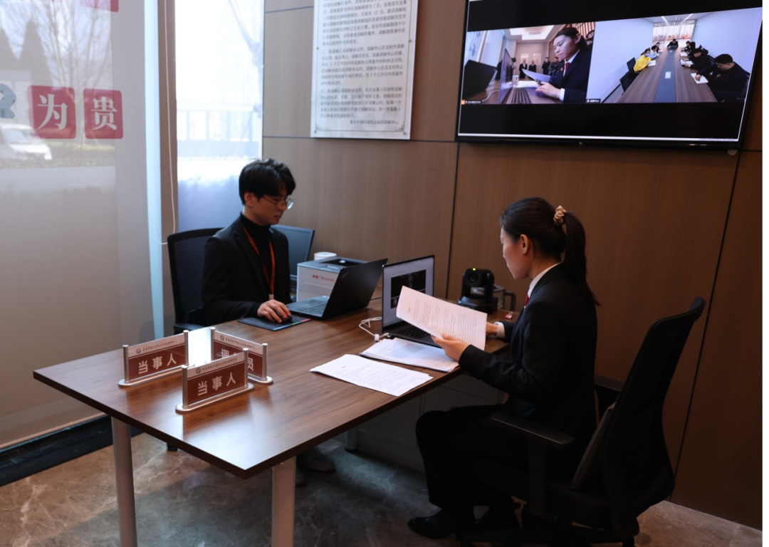 揭牌儀式后,共建單位參觀考察了“金法E站”運(yùn)行情況,并共同見證了一起金融糾紛的高效化解。調(diào)解人員通過“金法E站”調(diào)解平臺(tái)進(jìn)行線上調(diào)解,法官現(xiàn)場出具并送達(dá)司法確認(rèn)書,展現(xiàn)了高效、便捷、智能的金融糾紛化解新模式。