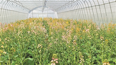 據(jù)科研團(tuán)隊(duì)負(fù)責(zé)人張冬青研究員介紹,科研人員采用精準(zhǔn)聚合育種方法,把不同花色基因重新組合,促使油菜花的花色種類不斷更新豐富。目前,團(tuán)隊(duì)已培育出高桿彩色油菜和矮桿彩色油菜不同花色各9種,具有花瓣大、色澤艷、香味濃郁、花量足、產(chǎn)量優(yōu)等特性,觀賞價值和經(jīng)濟(jì)價值全面升級。彩色油菜除了不同花色帶來的視覺沖擊感外,植株健壯、分枝多、產(chǎn)量和含油量接近生產(chǎn)上主栽品種。