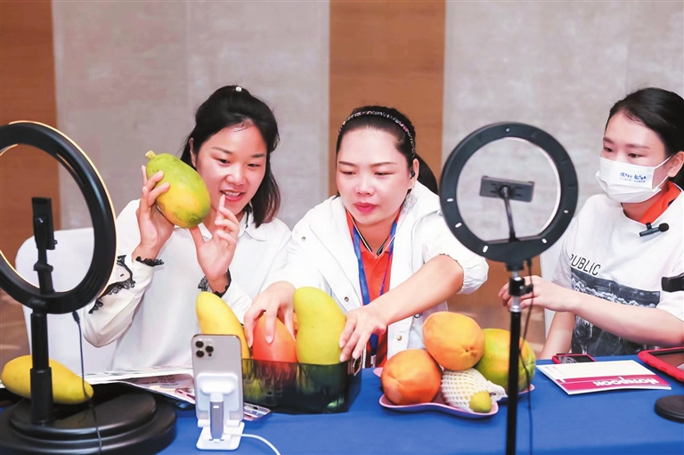 通過不斷摸索和嘗試,許雅情從缺乏經驗、不自信、迷茫的“電商小白”一路成長,用心經營,不僅通過直播帶貨銷售三亞芒果、木瓜、百香果等熱帶水果,還成立“海南一鹿鮮農業(yè)發(fā)展有限公司”、建立了“喜芒家”電商品牌。