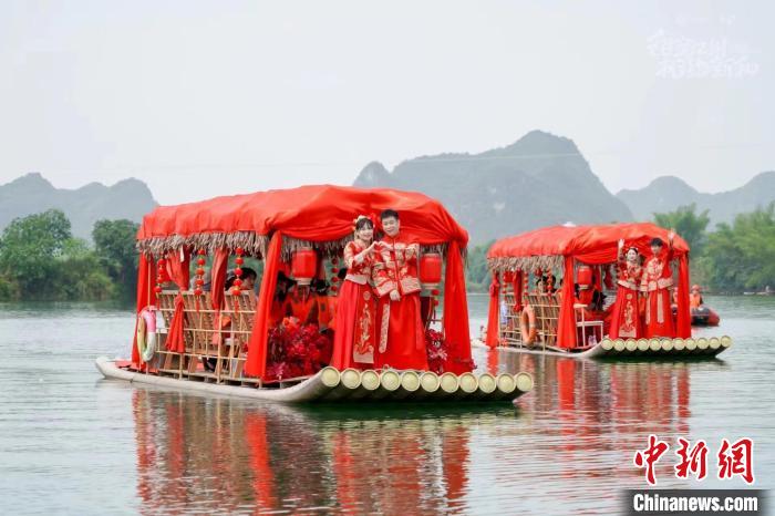 卜花村水上婚禮(崇左市江州區(qū)官方供圖)