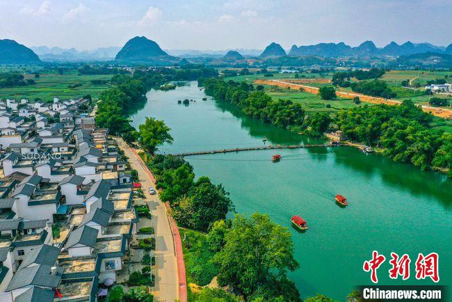初夏時(shí)節(jié),走進(jìn)卜花村,平坦的村道被長勢正盛的甘蔗林包裹,青瓦白墻的農(nóng)家小院錯(cuò)落有致。游客在此,可乘花船而行,或騎行于綠道,感受遠(yuǎn)山如黛,近水潺潺;亦可參與戶外稻田研學(xué),探秘壯族古法紅糖制作技藝,體驗(yàn)水上漂流等互動(dòng)項(xiàng)目;還可坐在鮮花燦爛的小院里,靜享石板路、竹籬笆間透露出的鄉(xiāng)野韻味。