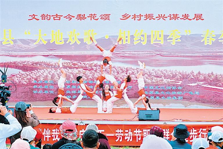 4月19日至21日,由文化和旅游部公共服務(wù)司主辦、自治區(qū)文化和旅游廳及中國(guó)文化館協(xié)會(huì)承辦、海原縣協(xié)辦的“大地歡歌·相約四季”春季村晚成果展示活動(dòng),在該縣關(guān)橋鄉(xiāng)方堡村梨花小鎮(zhèn)火熱舉辦。繁花綻放的數(shù)千畝百年梨園中,歌舞、魔術(shù)、戲曲、雜技等文藝表演輪番上陣、亮點(diǎn)紛呈;海原特色牛雜、燒烤、章魚(yú)小丸子、烤馕、手抓餅、肉夾饃、手工洋芋擦擦等鄉(xiāng)味濃郁的特色美食讓人回味無(wú)窮。剪紙、刺繡等非遺國(guó)潮集市人頭攢動(dòng),漢服游園者絡(luò)繹不絕,“璀璨梨園”篝火晚會(huì)更是讓游客流連忘返。