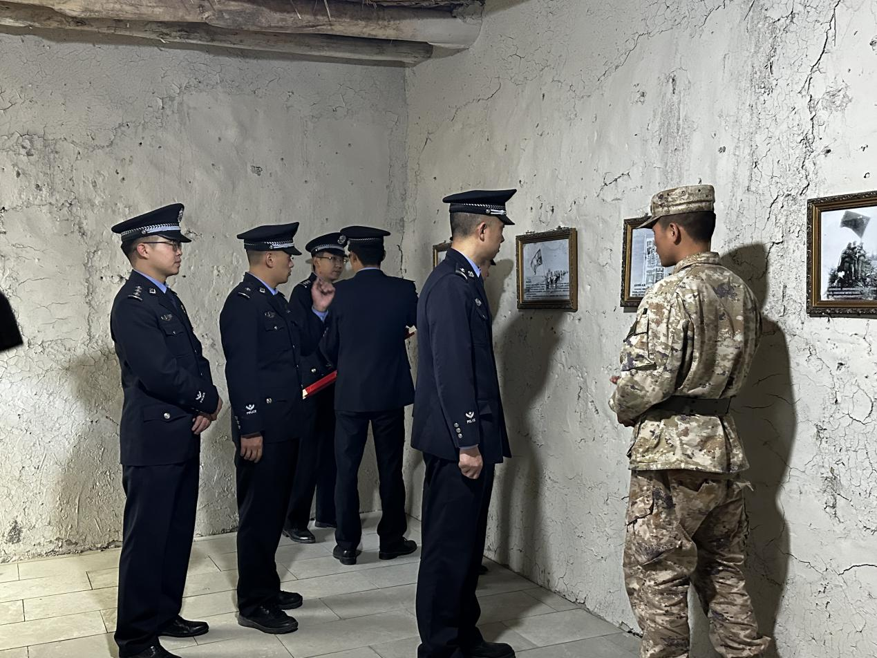宣誓結(jié)束后,移民管理警察們依次排隊走進(jìn)先遣連遺址大廳內(nèi),在一件件實物、一幕幕影像前駐足參觀、認(rèn)真聆聽講解,努力觸摸革命烈士的豐功偉績,感受邊防戰(zhàn)士“寧可青山埋忠骨、不讓祖國丟寸土”的時代脈搏。