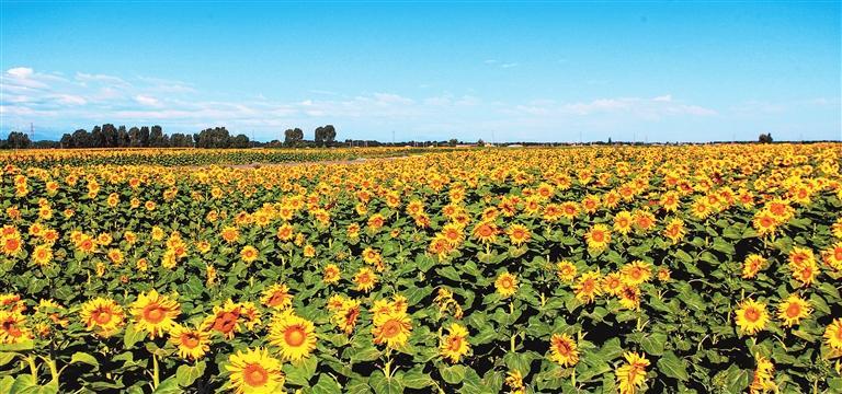 飲馬農(nóng)場(chǎng)盛開(kāi)的油葵 通訊員 完代可