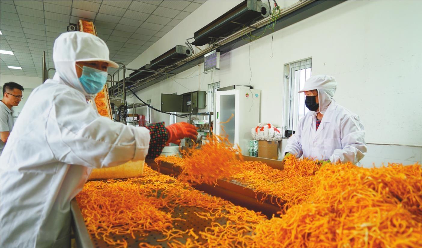 燈塔市眾信農(nóng)業(yè)科技有限公司生產(chǎn)車間里,工人正在烘干北蟲草 記者 嚴(yán)佩鑫 攝