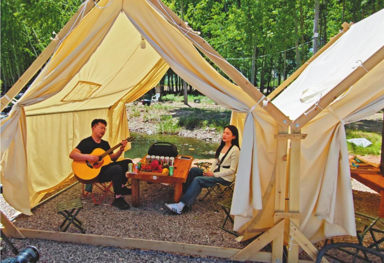 在范家滿族鄉(xiāng)今年新建的露營地里,游客盡享悠閑美好的假日時光。(綏中縣委宣傳部供圖)
