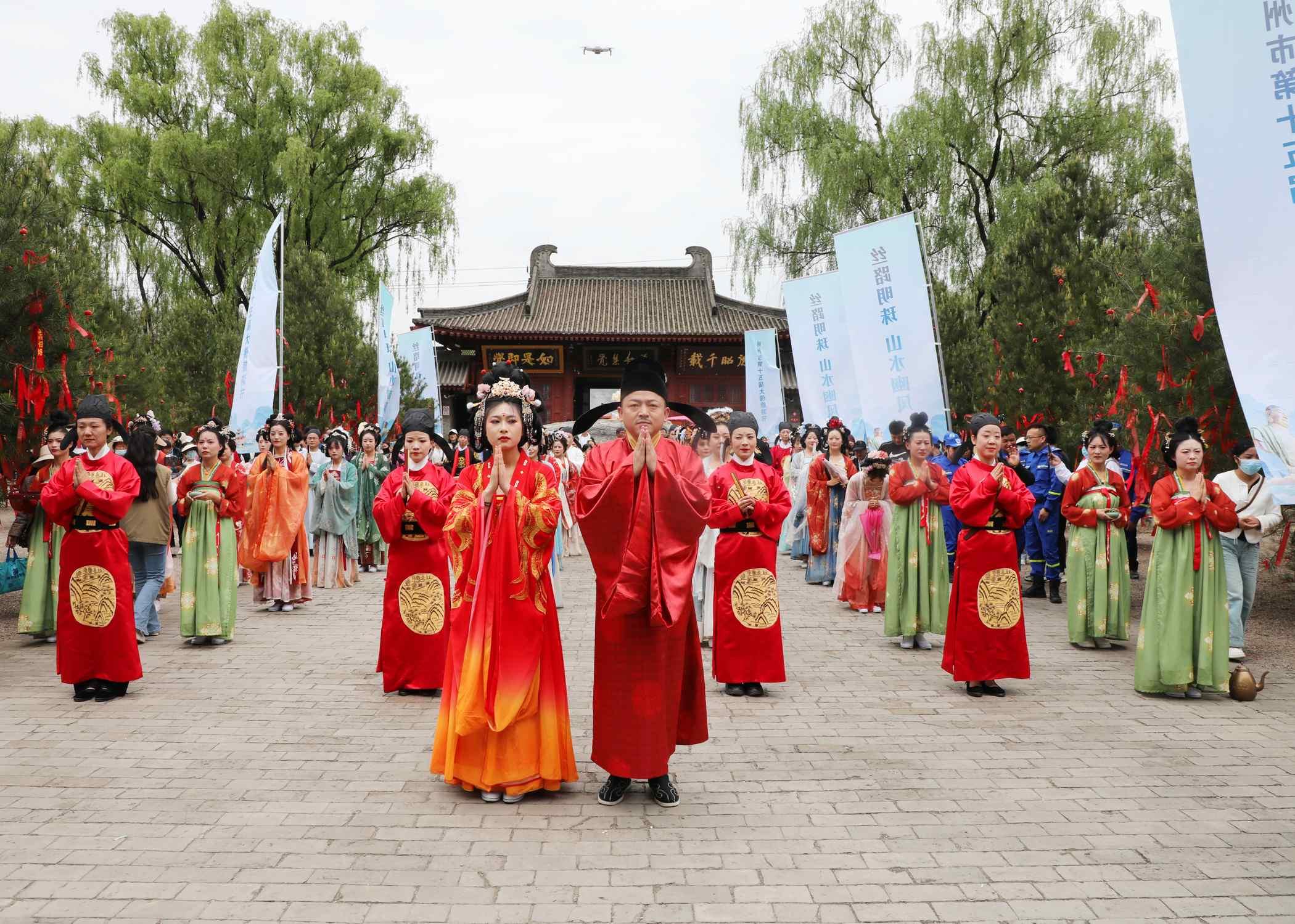 同樣,在豳風(fēng)公園、菊花廣場,“漢服進(jìn)景區(qū) 扮靚彬州城”文旅體驗(yàn)活動火熱開展,工作人員身著漢服,通過書法、古琴、茶藝、古詩詞吟唱等形式展示漢唐文化,邀請群眾現(xiàn)場品茶,贈送書法作品,現(xiàn)場累計(jì)有上千人參與?!拔幕^不僅是文化活動的場所,更是城市文化傳承和創(chuàng)新的重要載體。我們開展‘漢服進(jìn)景區(qū)’‘公主游春’等活動,促進(jìn)彬州傳統(tǒng)文化與旅游體驗(yàn)相結(jié)合,提升市民和游客的參與度?!奔o(jì)維剛說。