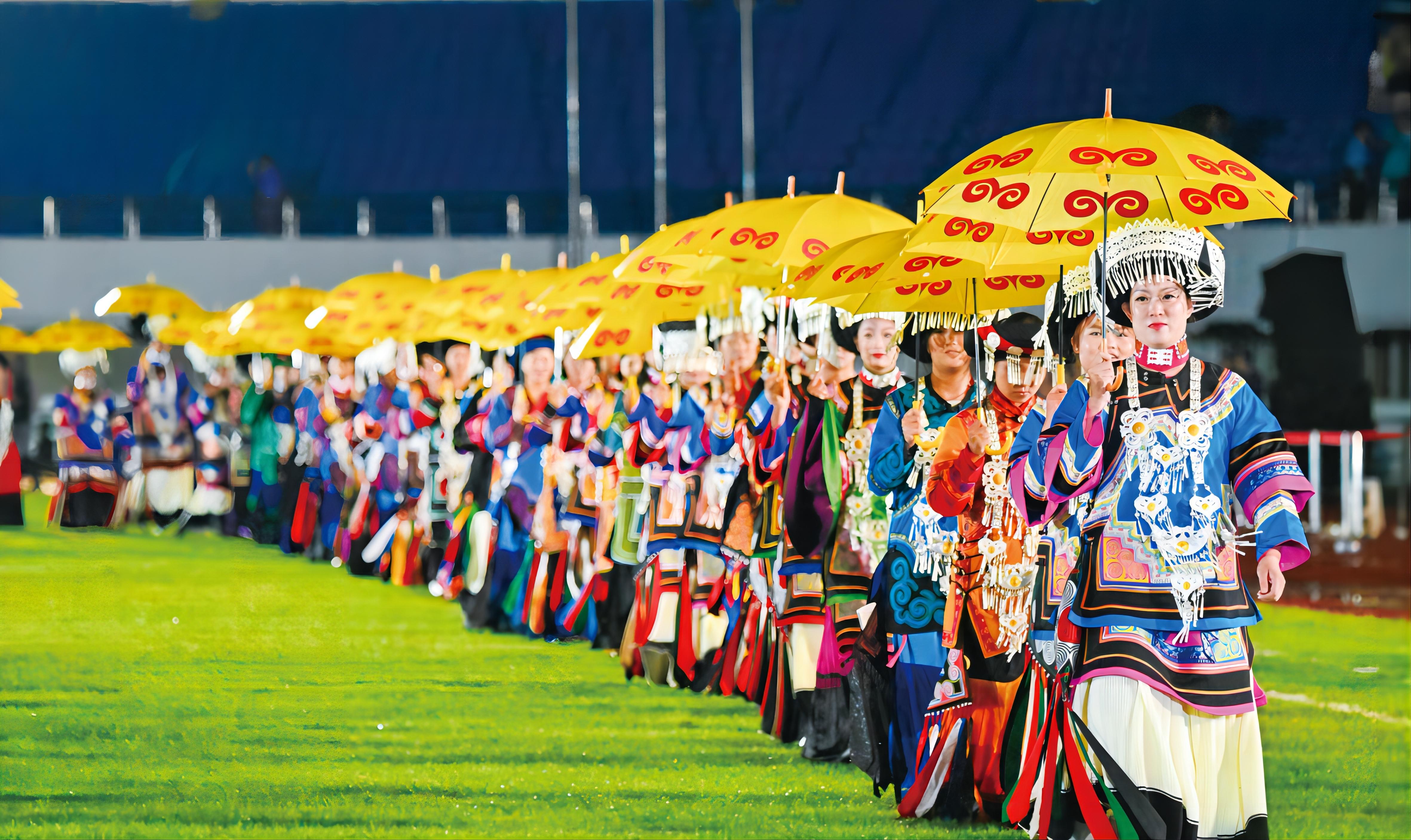 抖音足球嘉年華現(xiàn)場(chǎng)彝族服飾展演(西昌市文化廣播電視和旅游局供圖)