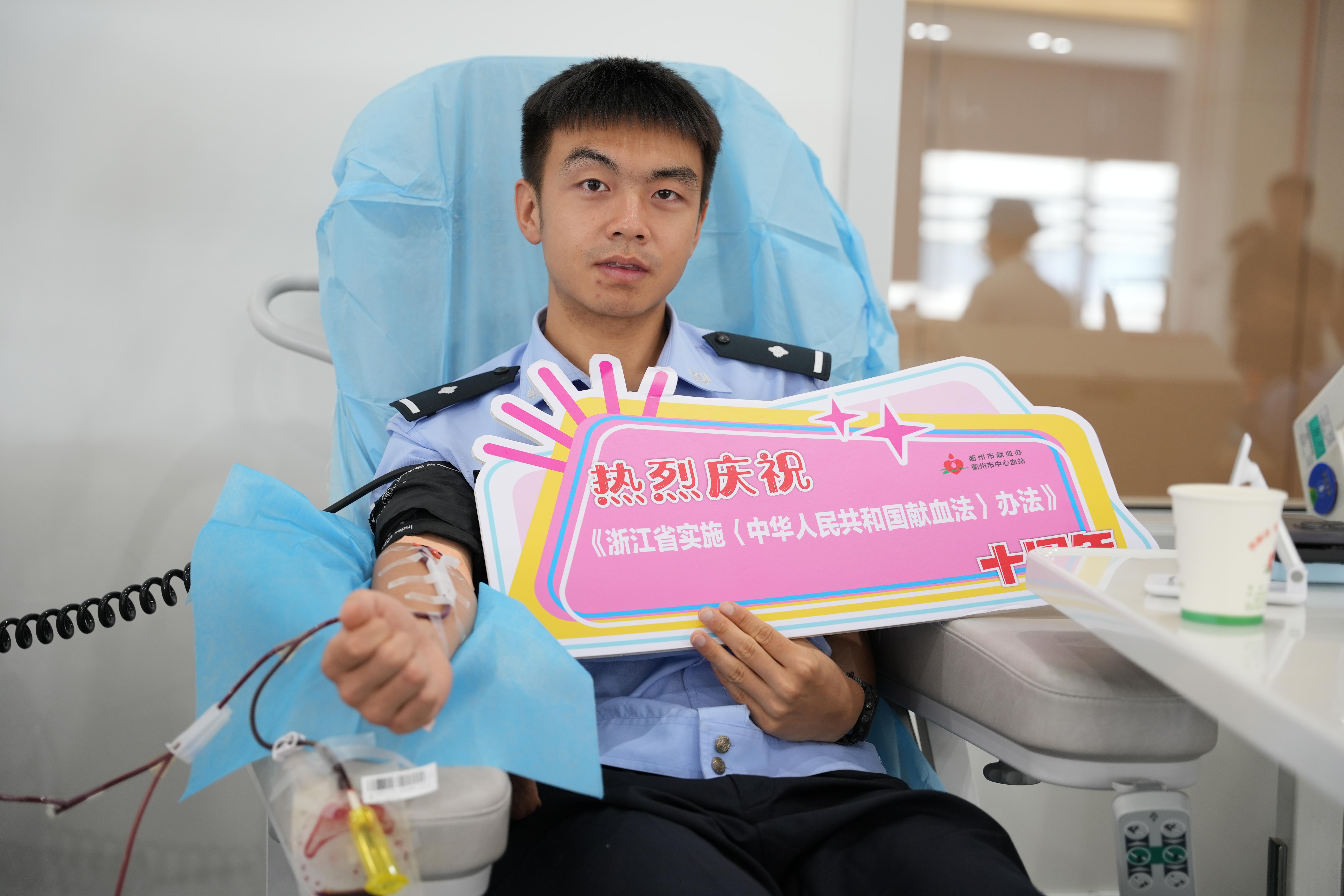 如今,徐垠飛已成為衢州市中心血站的“救火隊長”,每當血庫告急,工作人員總會第一時間想到他。無論刮風下雨,他總能及時出現在血站,血站里的護士也被他的行為所感動,徐垠飛笑著說,“作為一名黨員,參加無償獻血我隨叫隨到”。
