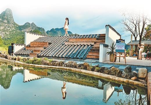 10月13日,位于七星區(qū)朝陽鄉(xiāng)的網(wǎng)紅點(diǎn)山鏡小院依然熱度不減。游客們有的拿著魚竿在塘邊悠閑釣魚,有的帶著孩子一起玩沙子、曬太陽,有的則走上“屋頂”擺出各種姿勢(shì)拍美照……大家各有所樂。