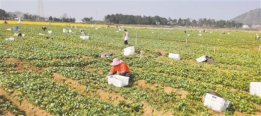 高路村供港蔬菜基地里,每天都有三四十名工人采摘時(shí)令蔬菜上市銷售 記者 王克礎(chǔ) 攝
