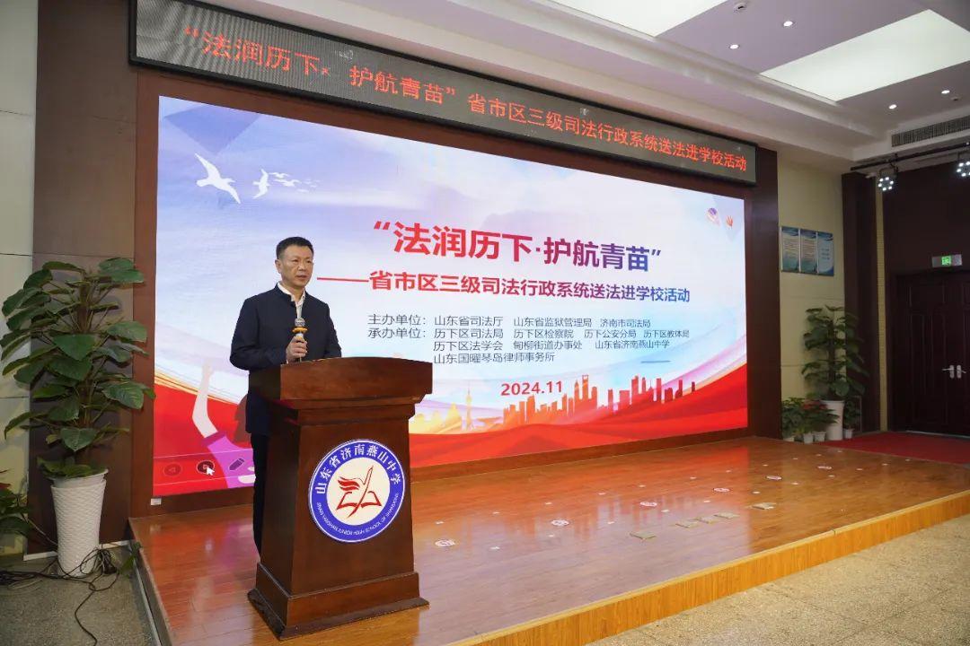 為貫徹落實山東省未成年人違法犯罪綜合治理工作座談會精神,切實發(fā)揮普法工作在未成年違法犯罪中的源頭預防作用,11月11日,省市區(qū)三級司法行政系統(tǒng)組織開展的“法潤歷下·護航青苗”送法進學校活動在燕山中學正式啟動。山東省司法廳黨委委員、副廳長,省監(jiān)獄局黨委書記、局長王發(fā)軍出席活動。