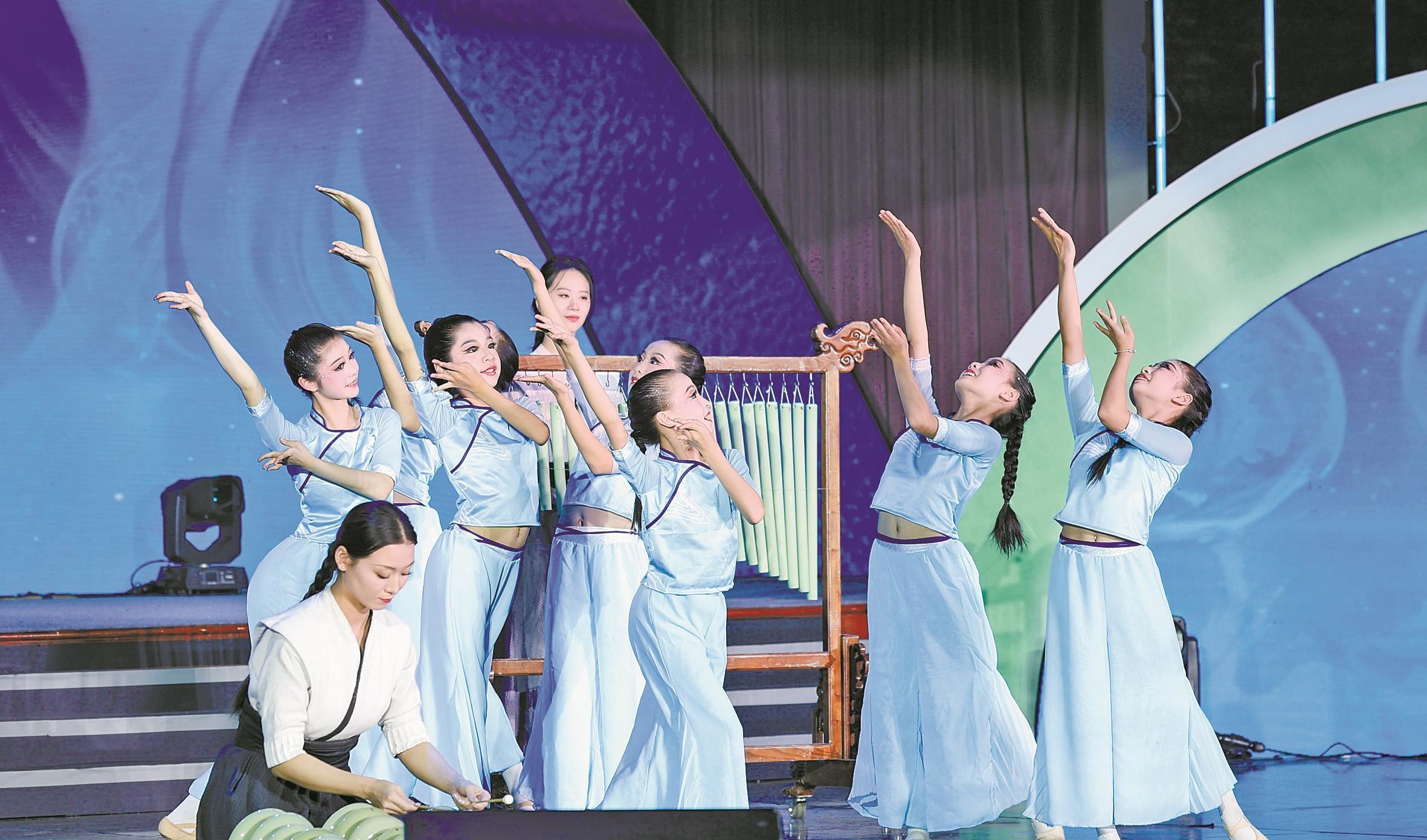 情景舞蹈《來來,村舞跳起來》中,來自海曙區(qū)龍觀鄉(xiāng)和石碶街道的廣場舞愛好者與街舞青年跨代合作,男女老少齊上陣。“我們不服老、不服輸?!?6歲的陳英琴說,空閑時她就喜歡和村民一起跳廣場舞,演出已經(jīng)是“家常菜”;